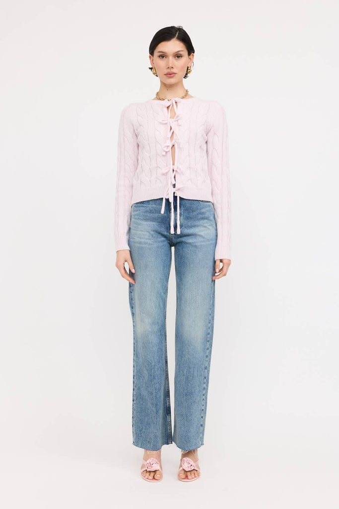 CABLE KNIT BLOUSE WITH FRONT TIES