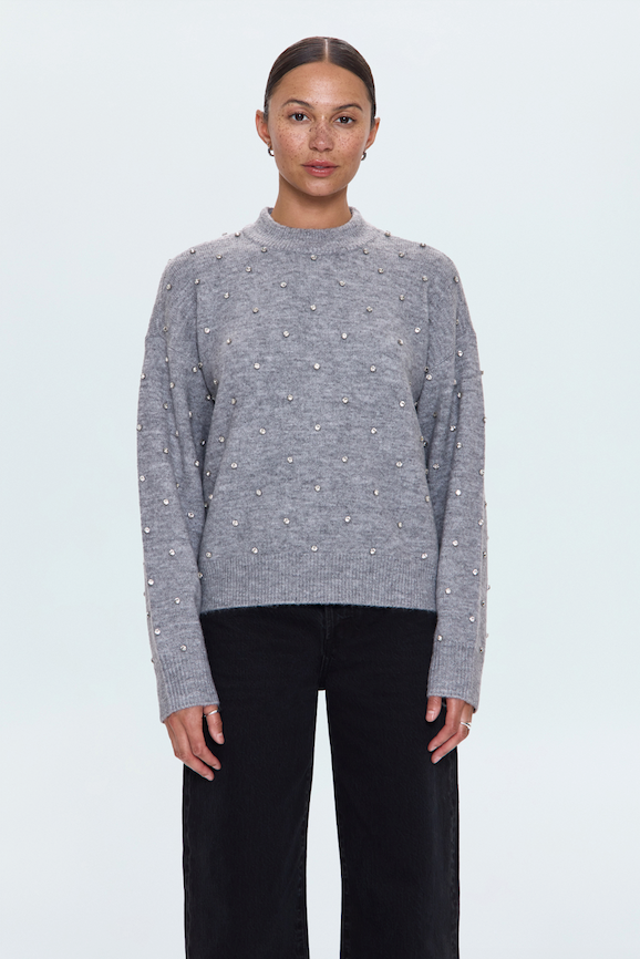 The perfect everyday sweater, Aura combines a relaxed fit and classic crew neckline with delicate crystal embellishments for a hint of subtle shine. Knit with a soft drape that layers effortlessly over denim or trousers. Charcoal Diamante, a deep gray hue, adds understated glamour to the season’s rotation.