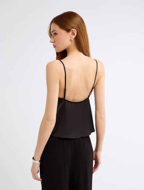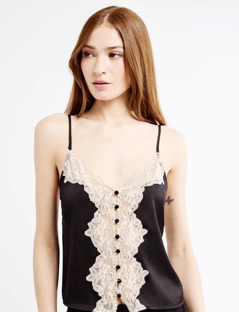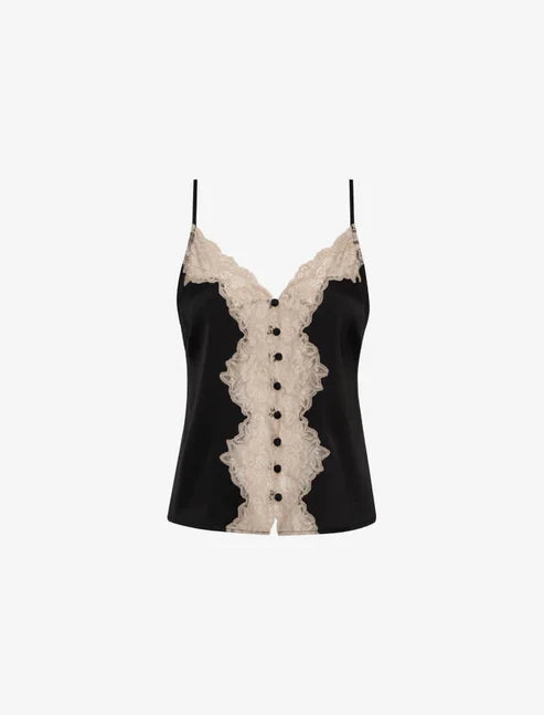 This luxurious silky top with scalloped lace has vintage-inspired written all over it.