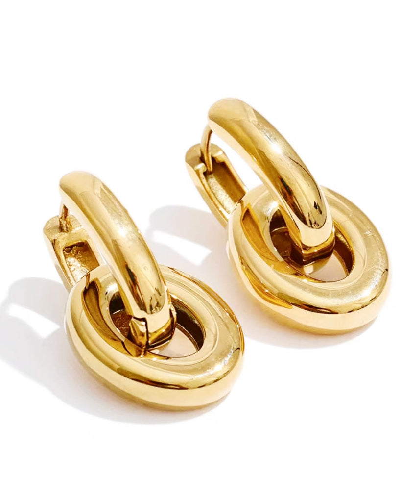Stainless steel gold Waterproof / Sweatproof 2 in 1 design- take off the charm and you have oval hoops 1.6 inch in size