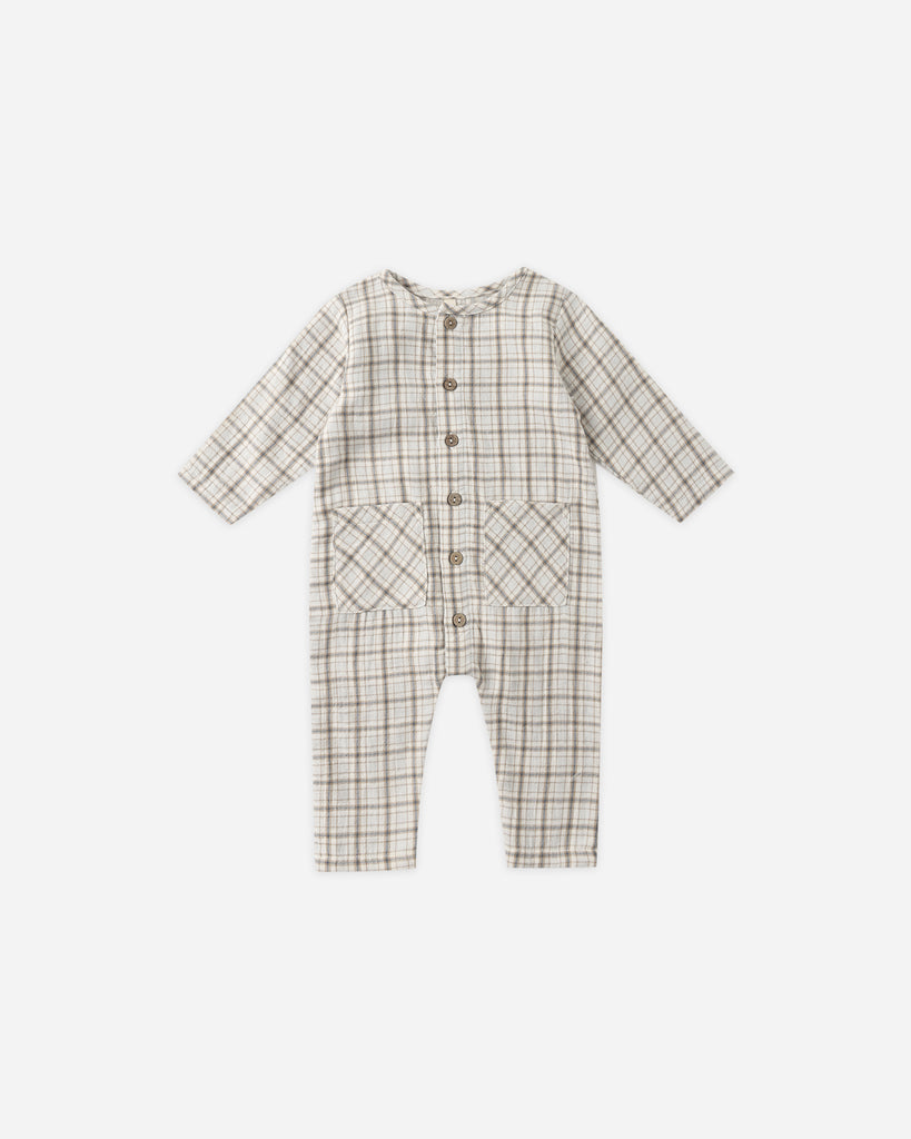 quincy mae pocketed woven jumpsuit - blue plaid