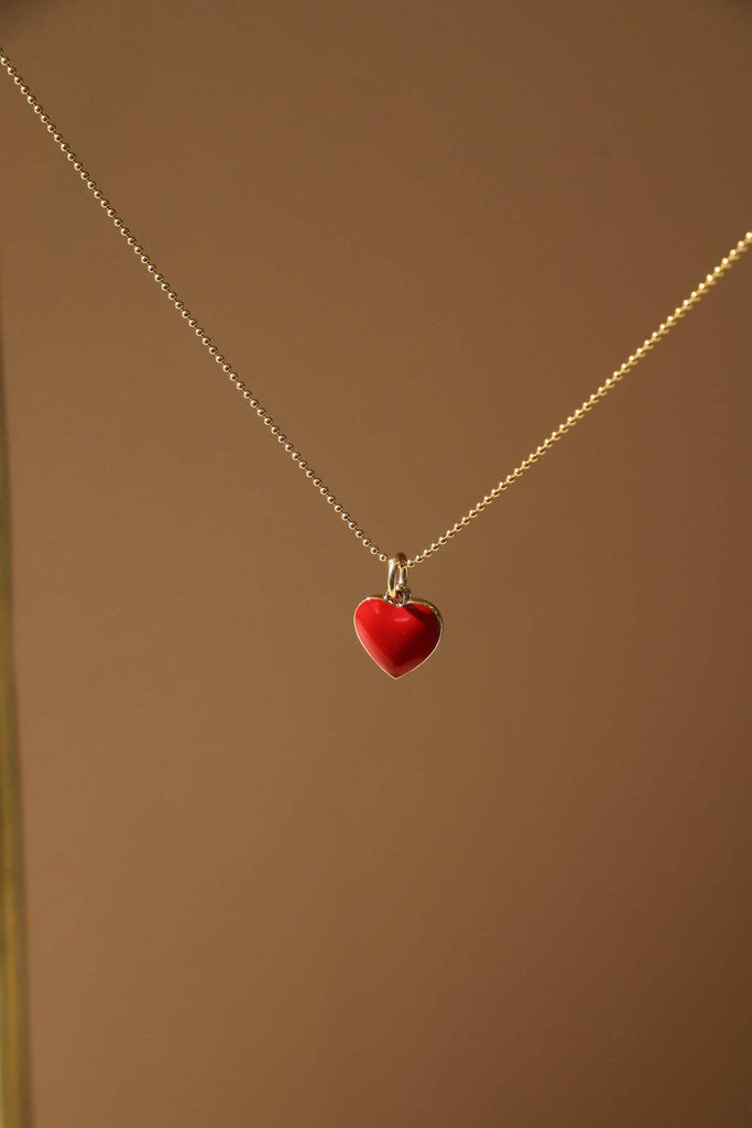 red enamel heart charm necklace