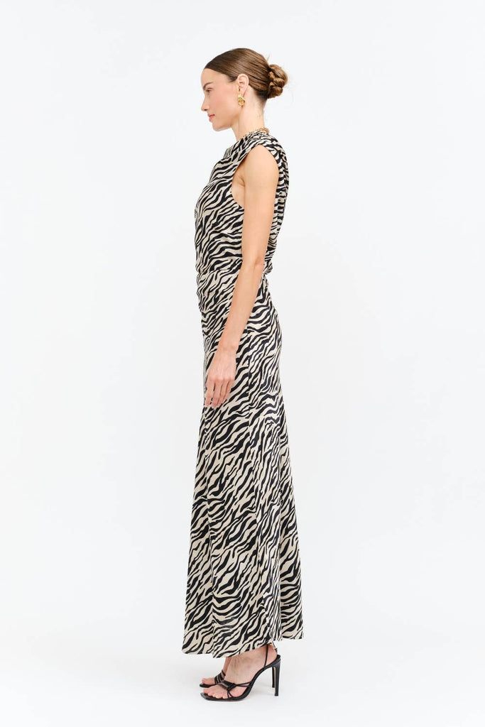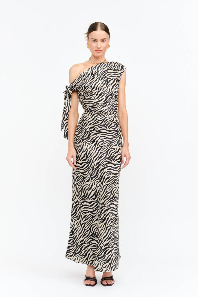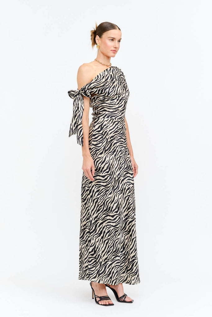 Zebra Satin Bias Dress - Hand wash cold - Do not bleach - Line dry - Iron low if needed - Do not tumble dry Model is 5'11" and is wearing a size small