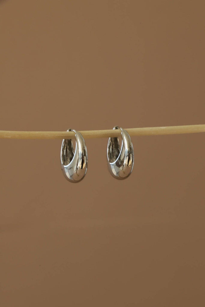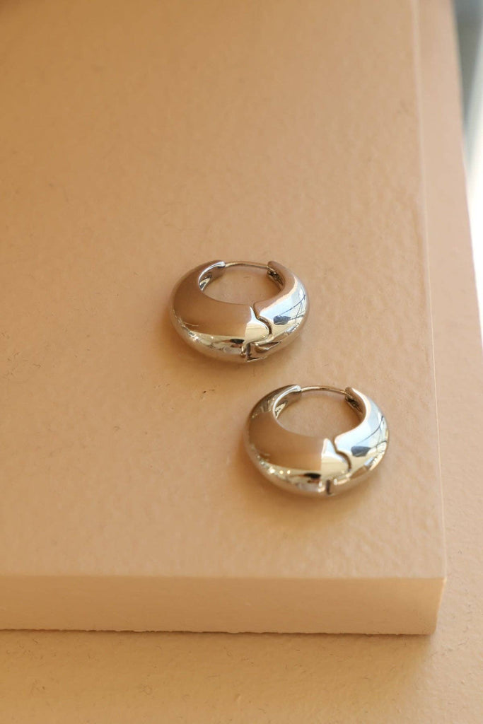 Elevate your wardrobe with our AMALFI HOOPS. These chunky statement huggies earrings are perfect for any occasion and are a must-have for any fashion-forward individual. Also available in Gold! Materials: Size: 24mm SKU: E1662SLG